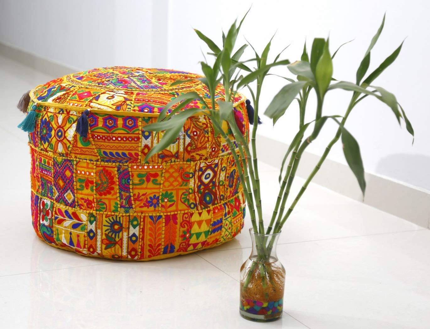 Trade Star Vintage Embroidered Ottoman Pouffe Cover For Home Decor Ethnic Handmade Rajasthani For Living Room Decor Indian Patchwork Foot Stool For Diwali Decoration Pattern 2 18 X 18 X 14 Inches Living Room Designs Ethnic