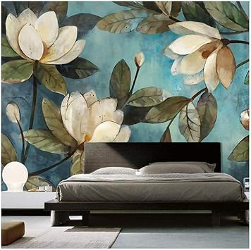 Fslucky Murals Deep Texture 3d White Lotus Retro Style Oil Living Room Modern 3d Wall Texture Living Room Modern Living Room Wall Painting