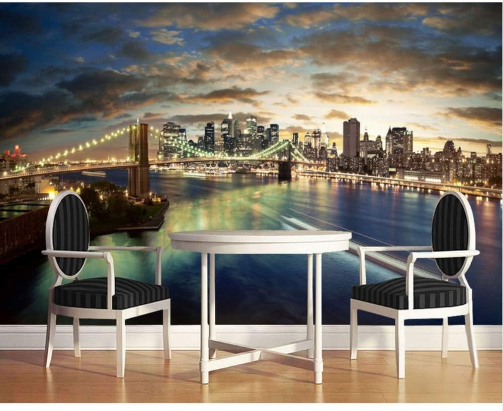 3d Wallpaper New York City Brooklyn Bridge Night View Tv Back Living Room Restaurant Brooklyn