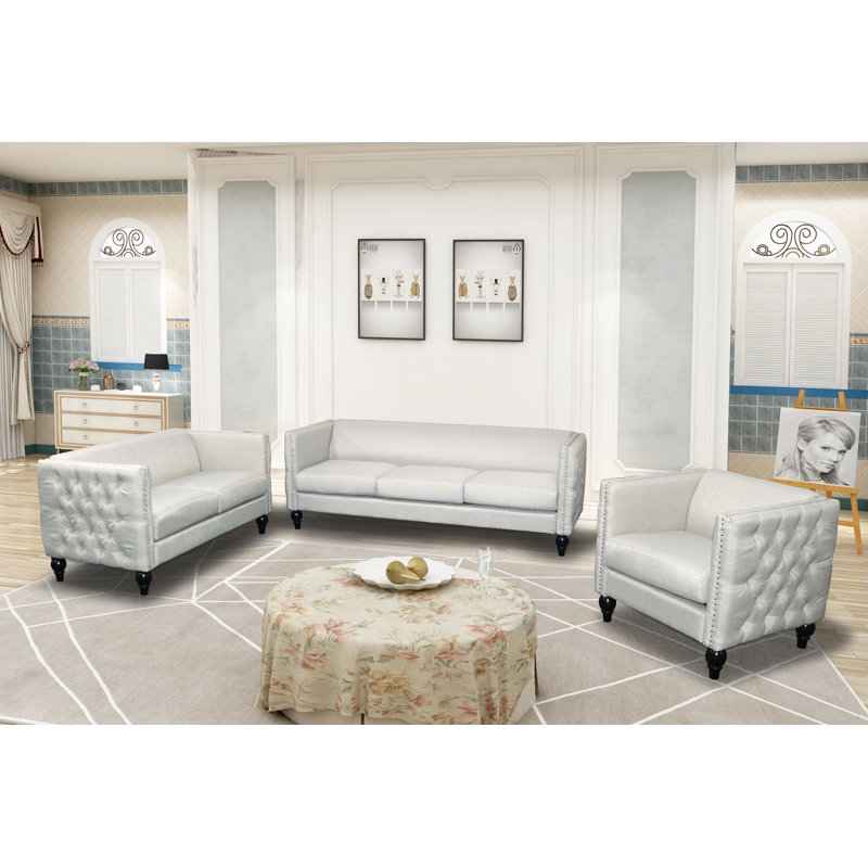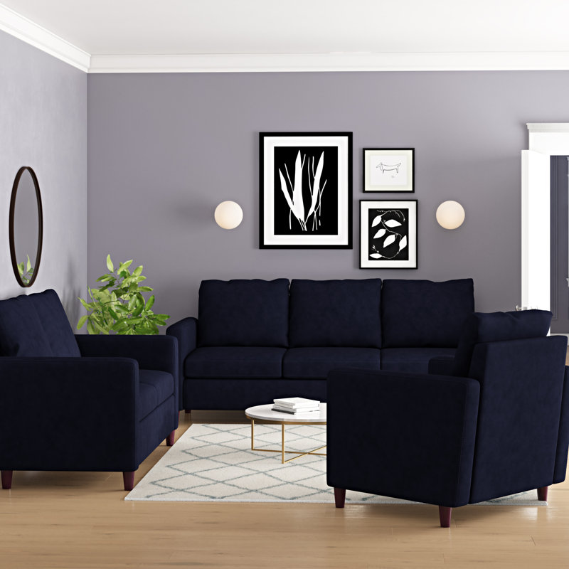 Wrought Studio Anglin Solid Raisin Fabric Modern 3 Piece Living Wayfair Modern Living Room Sets